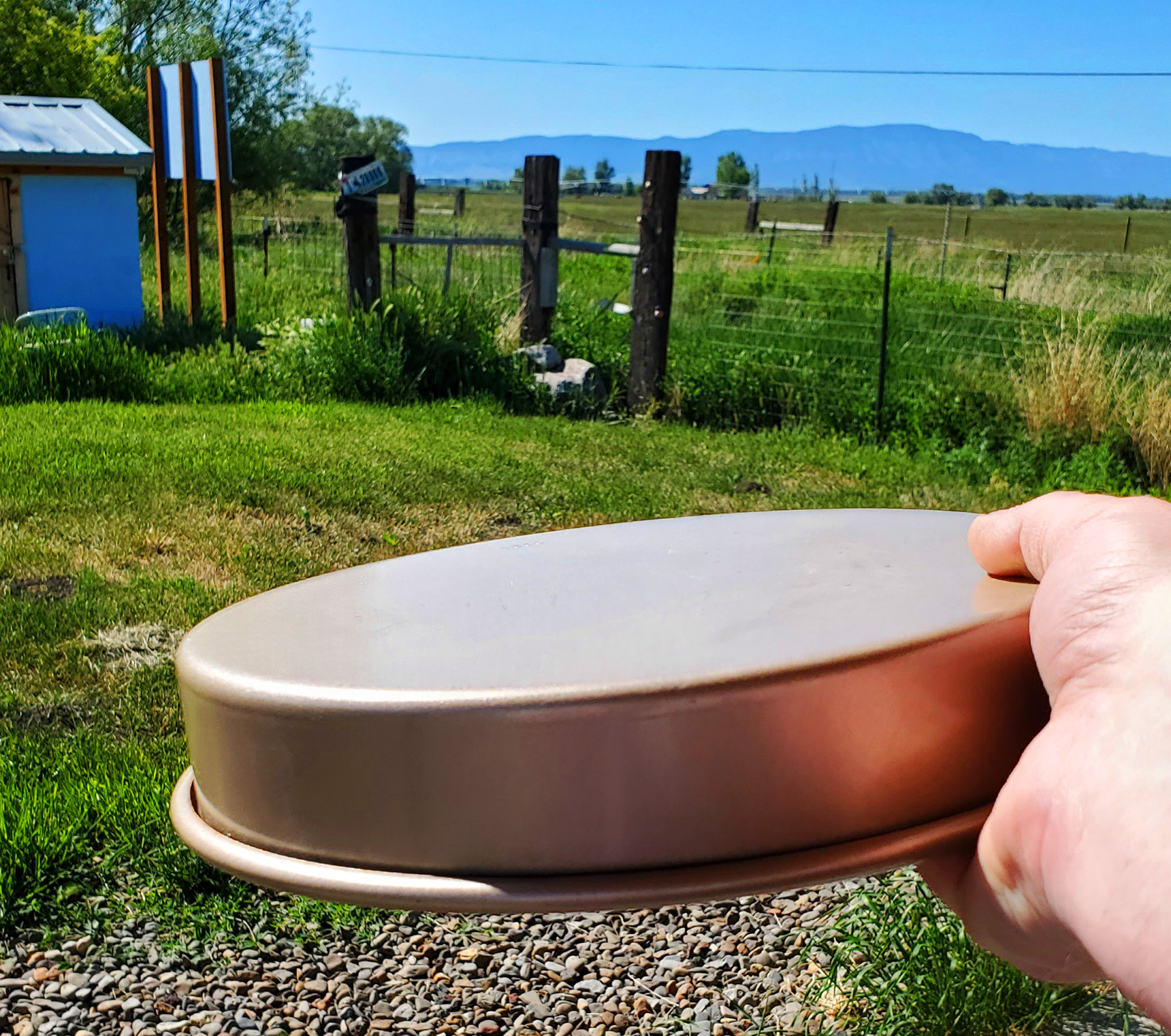 We have this heavy steel / copper pan we use to cover the cat food outside during morning and afternoon to keep birds from scarfing it. When we remove it around dinner time (and “open the cat cafe”) we clang it, Bandit usually hears and walks up to snack.